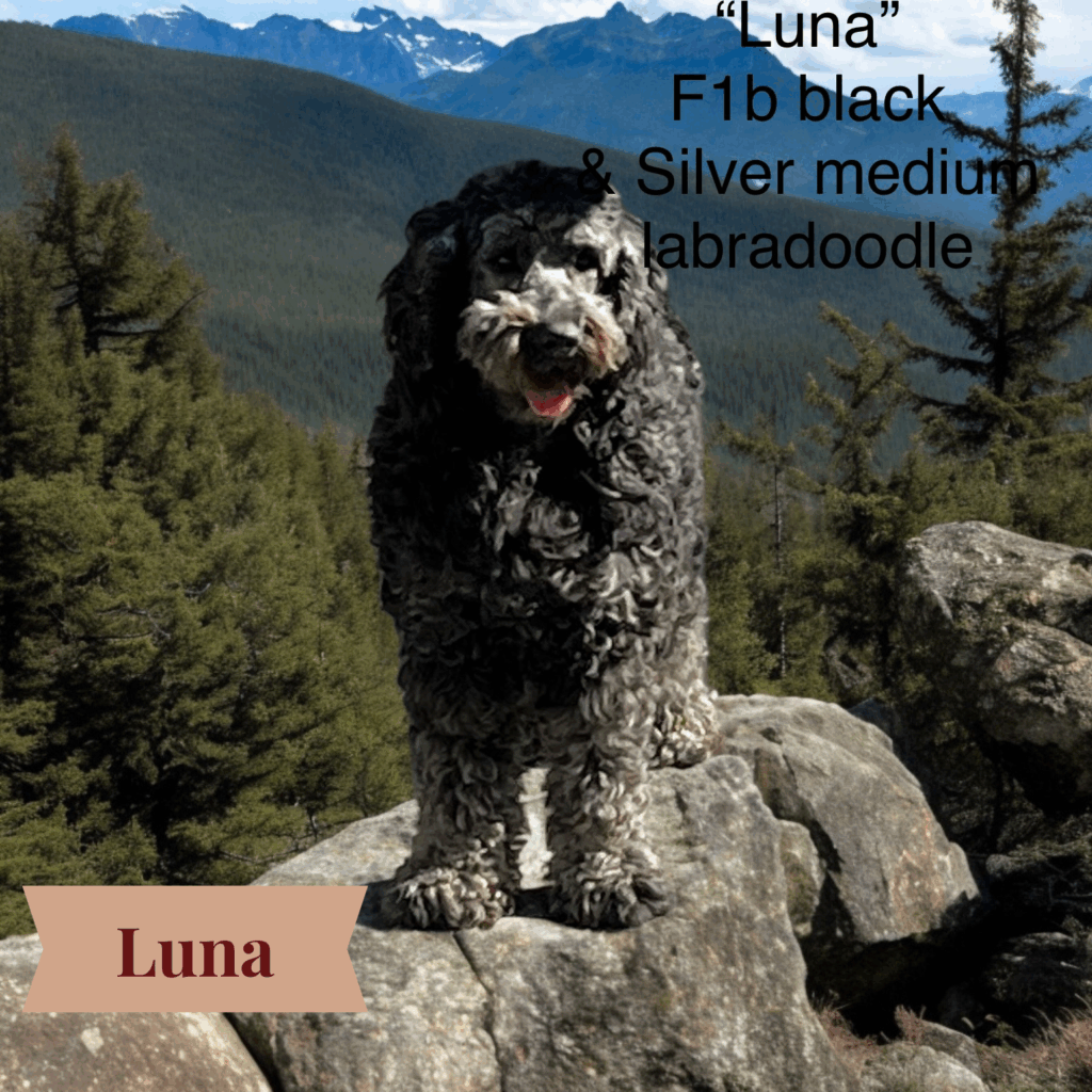 MOM – RIVERBLUFF’S “LUNA” 35 POUND F1B BLACK & SILVER MEDIUM LABRADOODLE